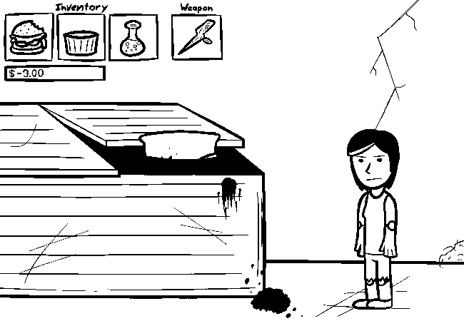 The Stinky Hobo grabs all his stuff and puts it in his inventory.