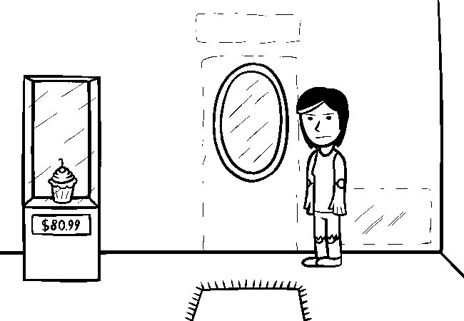 WW: Make the man in the mirror look at the horrific cupcake thing.