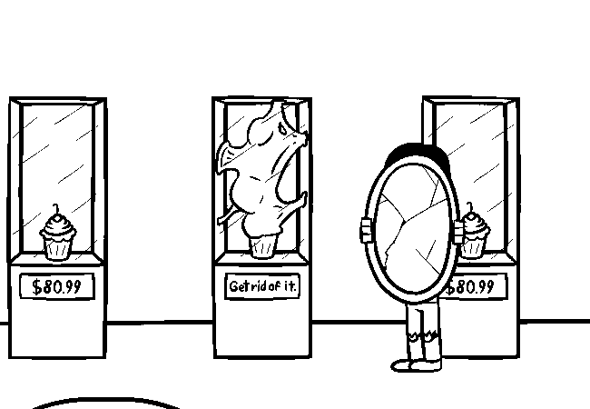 WW: Make the man in the mirror look at the horrific cupcake thing.